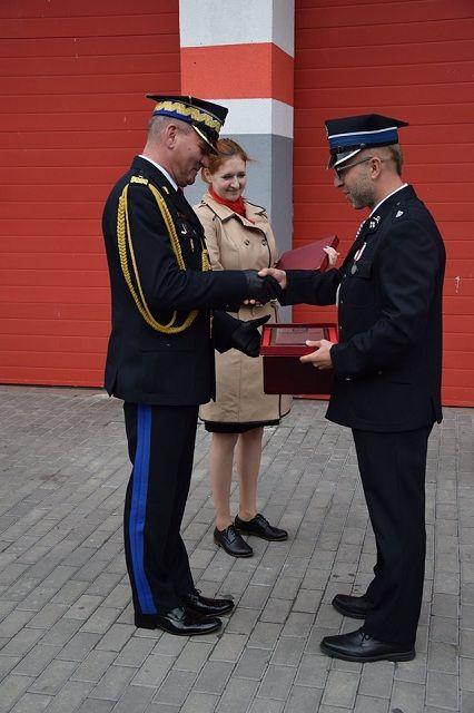 dh. Krzysztofa Sadowskiego przekazała Pani wiceminister Anna Gembicka, natomiast akt przekazania pojazdu wręczył Kujawsko-Pomorski Komendant Wojewódzki PSP