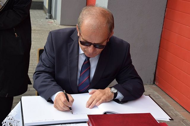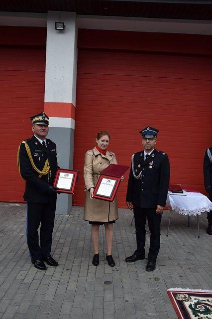 w Ministerstwie Edukacji Narodowej Pani Iwona Michałek, Pan Tomasz Sińczak, który reprezentował Jana Ardanowskiego-Ministra Rolnictwa i Rozwoju Wsi, Pani Poseł Marzenna Drab, Pan Senator Józef Łyczak, Kujawsko-Pomorski Komendant Wojewódzki Państwowej Straży Pożarnej nadbryg. Janusz Halak, Pani Małgorzata Wdowczyk reprezentująca Lidię Zwierzchowską -Starostę Aleksandrowskiego, Wicestarosta Aleksandrowski Pan Adam Potaczek, oraz Pani Wiesława Słowińska – Wójt Gminy Raciążek. Z ramienia komendy w uroczystości uczestniczyli p.o. Komendanta Powiatowego Państwowej Straży Pożarnej w Aleksandrowie Kujawskim bryg. Sławomir Zawitowski oraz st. kpt. Krzysztof Kornacki – Dowódca JRG PSP.