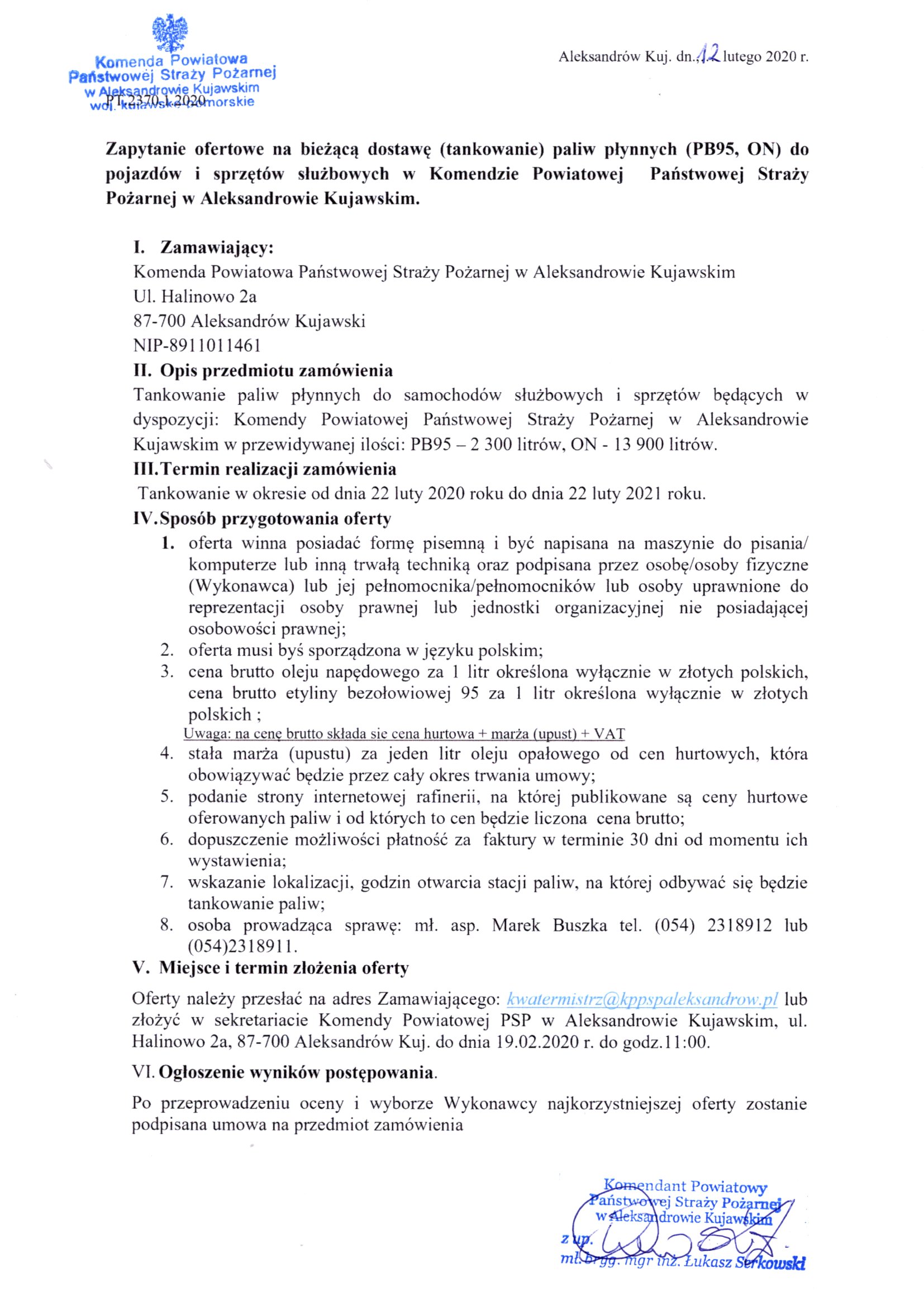 Zapytanie ofertowe na bieżącą dostawę paliw płynnych